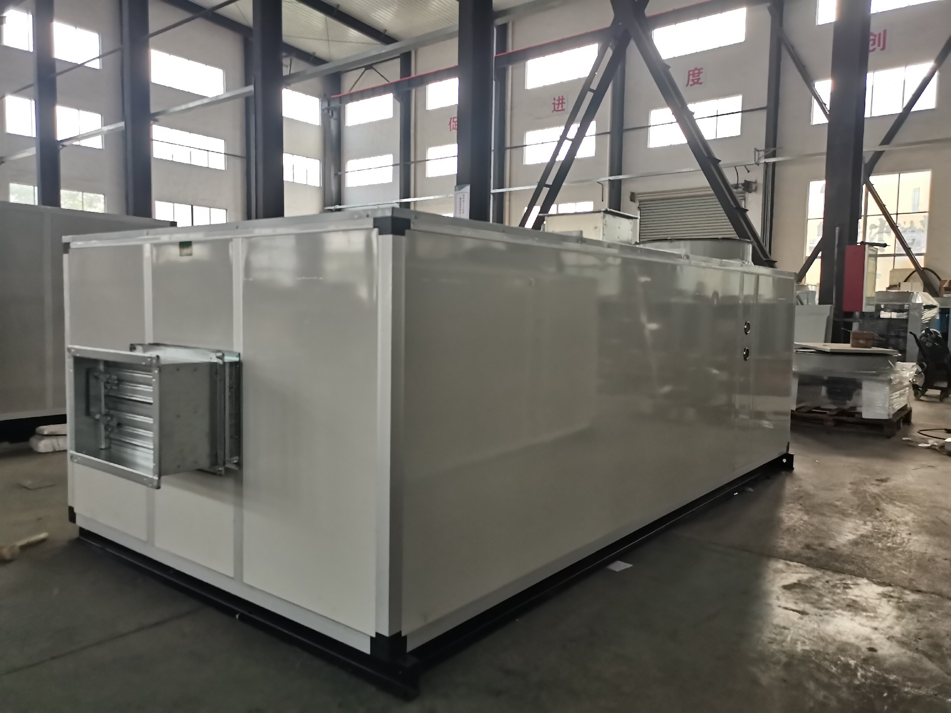 同恩牌防爆屋頂式空調機組為全空氣系統,是集制冷、制熱、恒溫恒濕、空氣凈化等功能于一體的大中型空調設備。該型屋頂機系列產品集成了直膨組合式空調與風冷熱泵技術,實現了制冷與空氣調節集中式綜合控制等優點,具有節能、系統簡單、性能穩定等特點,的微電腦控制使得空氣性能與品質得到了佳的控制;機組的壓縮冷凝段采用板塊拼裝的方式,空氣處理段各功能段采用鋁合金框架與高壓發泡雙壁結構,具有技術成熟、設計靈活、功能段組合多樣、安裝簡便、易于控制等特點。